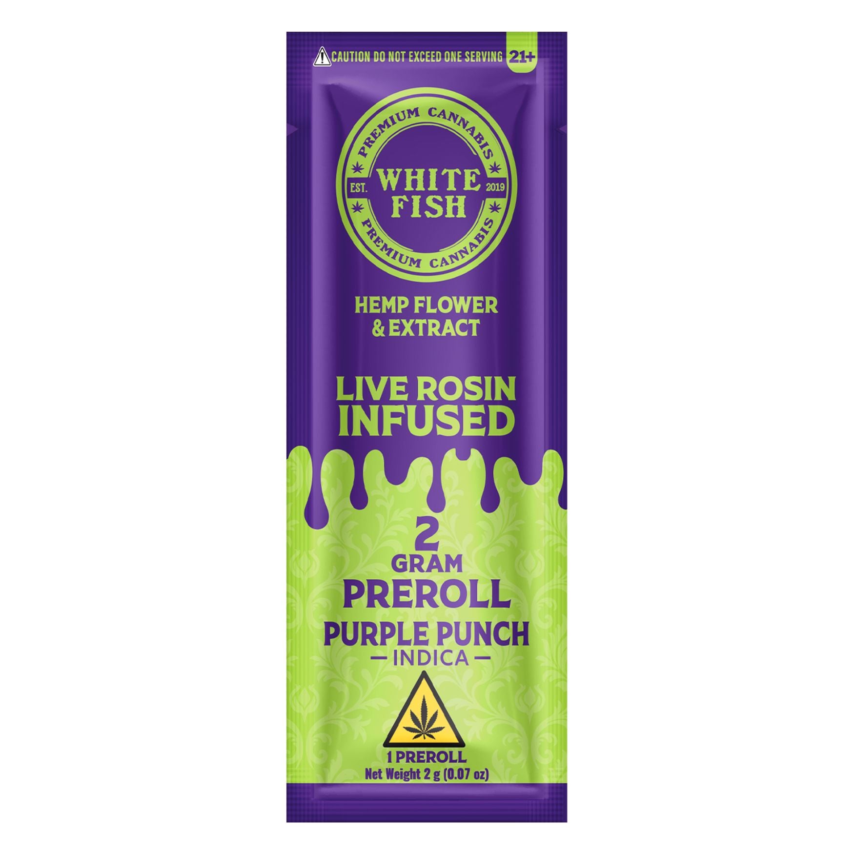 Each White Fish Single delivers a full 2g of premium indoor flower, infused with real solventless live rosin - not sprayed, not disty-drenched, not mystery goo.
